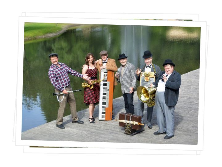 New Orleans Jazz vom Feinsten mit Klarinette, Saxophon, Tuba, Waschbrett, Klavier und Gesang.