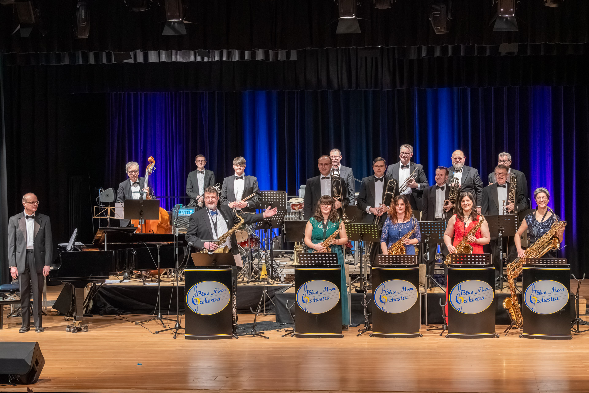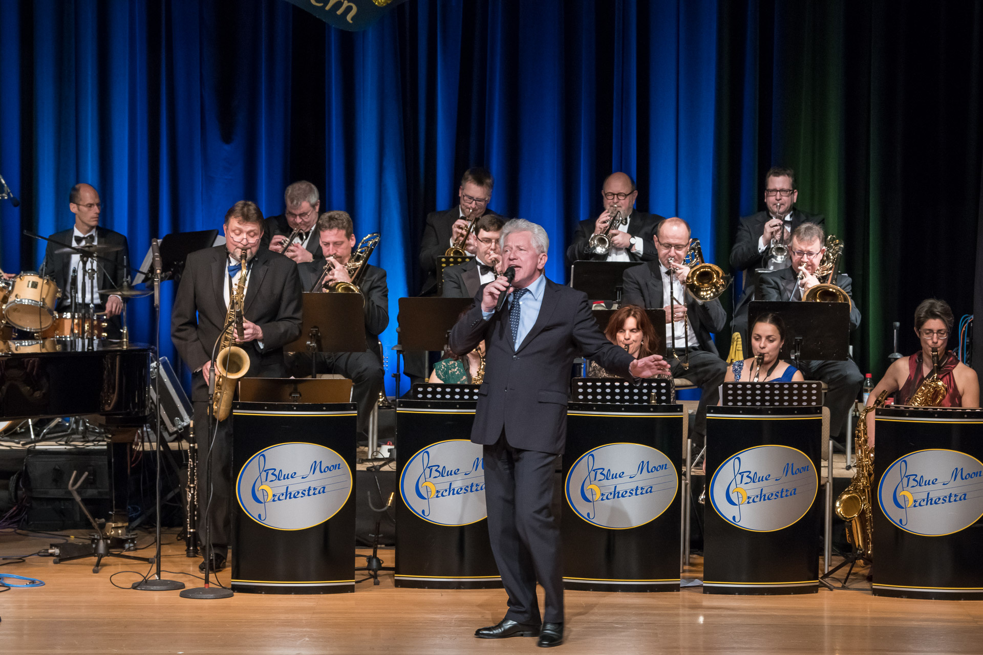 Vergessen Sie Playback – hier pulsiert 100% pure Live-Energie. Das Blue Moon Orchestra verwandelt jeden Galaabend in eine Zeitreise in die Swing Ära der 30er und 40er, baut aber auch Brücken zu Pop-Musik heutiger Zeiten. Eine massive Bläserwand aus 13 Virtuosen, getrieben von einer fetzigen Rhythmusgruppe veredelt durch soulige Vocals. Nicht nur Musik – sondern eine professionelle Bühnenshow, die Ihre Gäste garantiert auf die Tanzfläche zieht.